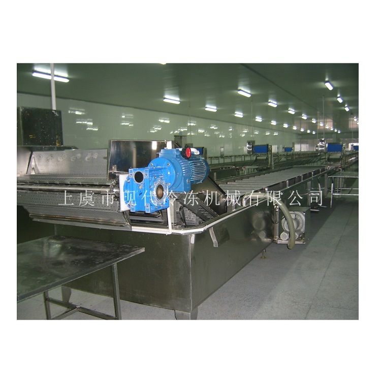 魚片加工線可分為汽泡清洗機(jī)、粗加工線、魚去皮機(jī)、精加工線幾大件組成,粗加工線設(shè)計(jì)為三層輸送機(jī),分別為原料輸送一層,一層邊上設(shè)有工作臺(tái),工作臺(tái)兩邊配有水籠頭,去頭、去尾、去內(nèi)臟,廢料輸送一層;精加工線設(shè)計(jì)為二層輸送機(jī),分別為原料輸送一層,一層邊上設(shè)有工作臺(tái),為魚片去刺、整理。