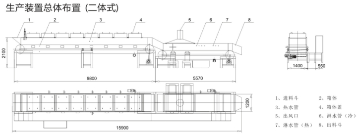 Overview of Equipment:ZFJ-Horizontal Automatic Steaming Rice Machine is a new type of energy-saving and environmental-friendly horizontal automatic steaming rice machine, which combines the advanced brewing technology and traditional manufacturing technology at home and abroad, in order to speed up the technological renewal and replacement of new products. With the continuous progress of the times, the development of the brewing industry and the continuous improvement of production capacity, the original labor force can not meet the needs of the whole society for wine, so the brewing industry must speed up the mechanized production to replace labor intensity, in order to stabilize the pace of enterprise development. Horizontal automatic rice steamer is the best combination of steam (natural gas and thermal exhaust as energy) and wind, so as to achieve the best cooking and cooling effect. The equipment is generally divided into two parts, cooking section and cooling section.