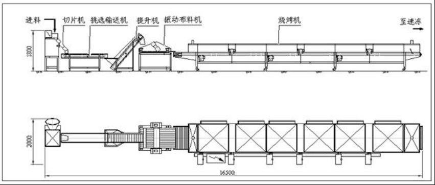 SK型蔬菜燒烤生產(chǎn)線由切片機(jī)、挑選輸送機(jī)、提升機(jī)、振動(dòng)布料機(jī)、燒烤機(jī)、振動(dòng)分級(jí)機(jī)等組成,可用于茄子, 南瓜, 辣椒,蘑菇,土豆,紅蘿卜,大蒜,蔥,蕃茄,西紅柿等各類蔬菜的燒烤處理。