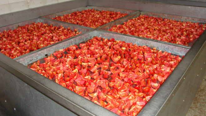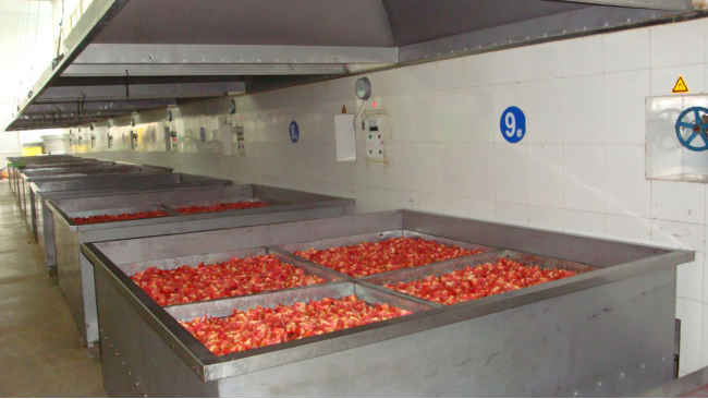 采用常溫空氣經(jīng)熱交換器,交換使其變成高溫干燥熱空氣,通過鼓風機作用,讓熱空氣與物料進行熱交換而達到干燥效果。箱式烘干機最大特點是操作方便,靈活可控性好,適用范圍廣、實用性強。特別適用于含糖類或帶粘稠性產(chǎn)品。如加糖的胡蘿卜、甘藍菜、以及海帶、紫菜等。且衛(wèi)生條件好,易清洗,易維護。