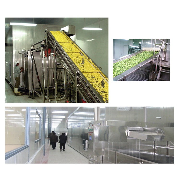 SLD系列新型高效流態(tài)化速凍機是我公司充分吸收國內(nèi)外的先進技術(shù),揚長避短、 集各家之長,新開發(fā)的新一帶速凍裝置,精湛的加工技術(shù)及一流的加工工藝,確保產(chǎn)品在同行中處于領(lǐng)先地位。該機融入最新速凍技術(shù)和最新設(shè)計理念,采用多項最新流態(tài)化凍結(jié)技術(shù),是當前產(chǎn)品性能最卓越,設(shè)計最先進的速凍機。該系列速凍裝置是實現(xiàn)果蔬類食品及部分海產(chǎn)品流態(tài)化單體凍結(jié)的最佳設(shè)備,用風(fēng)力強勁的離心式風(fēng)機,凍品在不銹鋼輸送帶上移動,隨著氣流速凍的增加,食品層開始松動;當風(fēng)壓達到一定數(shù)值時,食品顆粒不再保持靜止狀態(tài),部分顆粒懸浮向上,造成床層膨脹,空隙率增大,即形成流化床;在此流化床上受由下而上的強冷風(fēng)吹浮處在懸浮狀態(tài)下的食品,凍品各面均受到冷風(fēng)繞流,來實現(xiàn)凍品的快速凍結(jié),形成單體,使被凍的凍品迅速通過冷卻,表層凍結(jié),深層凍結(jié)三個階段,從而獲得最高品質(zhì)的速凍食品。
