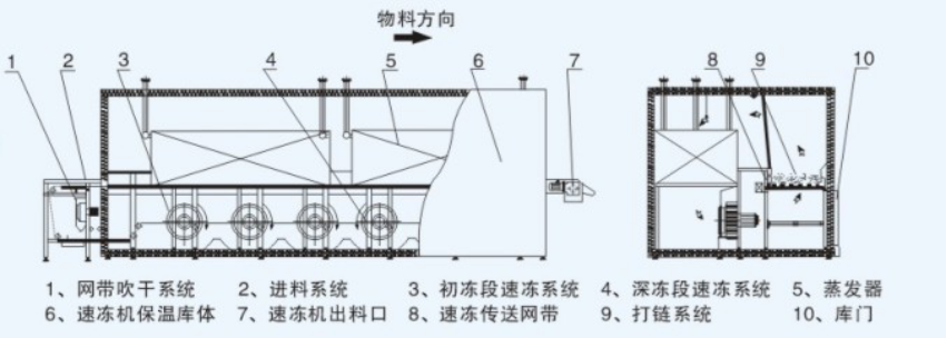 1、機型結(jié)構(gòu) 采用歐洲最成熟的機型,結(jié)構(gòu)合理,對不同的產(chǎn)品形狀和尺寸均能達到最佳的速凍效果。